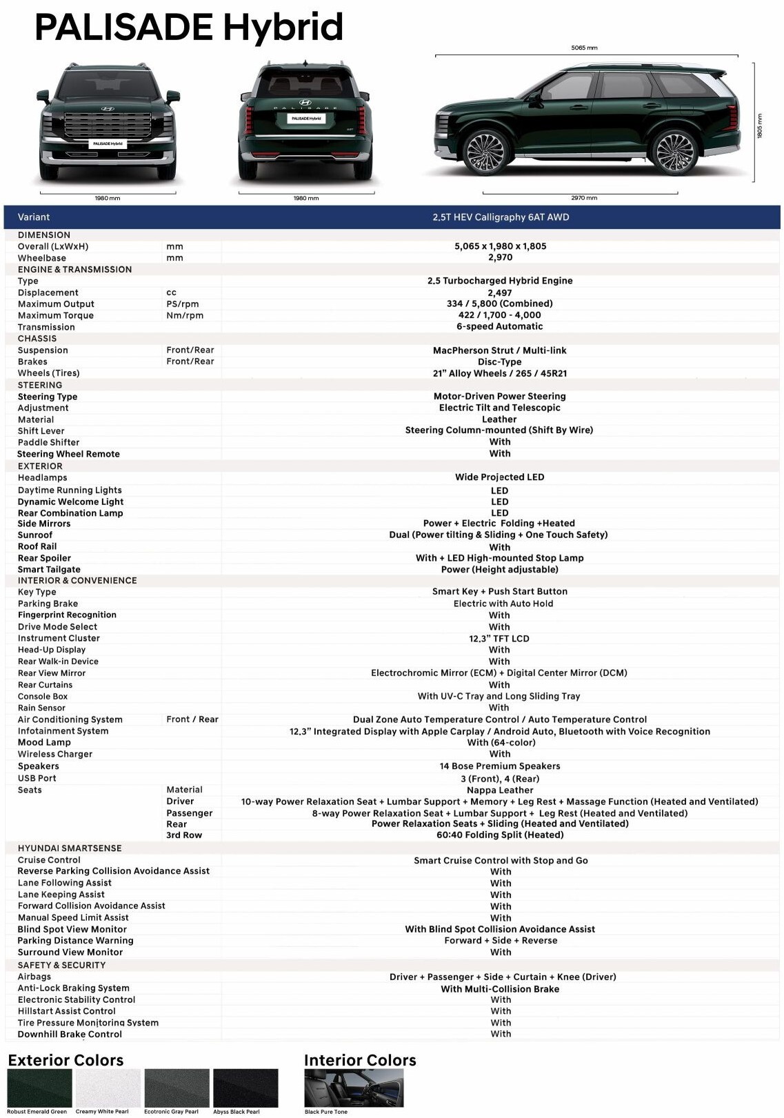X. Thông số kỹ thuật dự kiến Hyundai Palisade Hybrid 2026